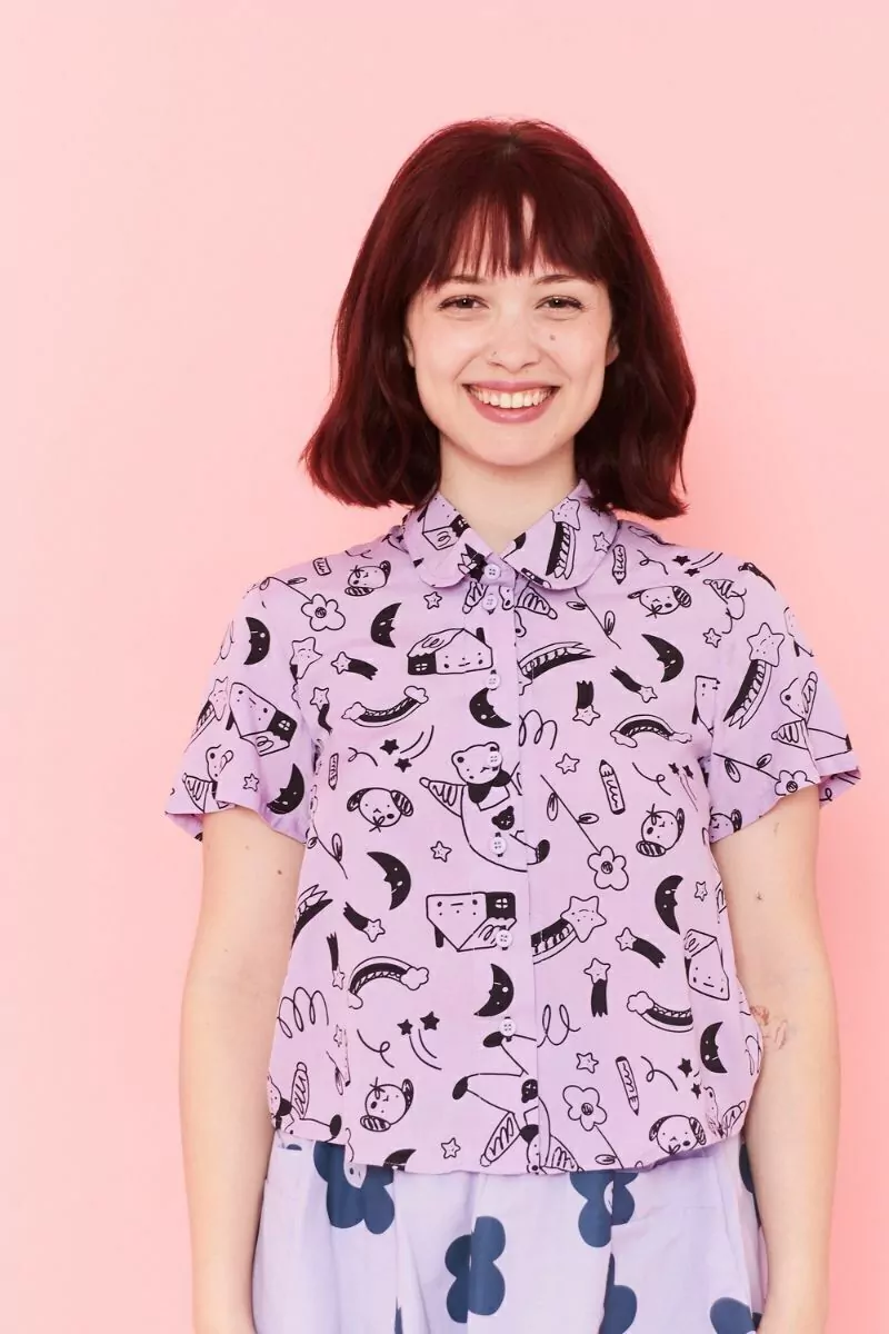Camisa con corte suelto. Es cortita para usar con tiro alto.