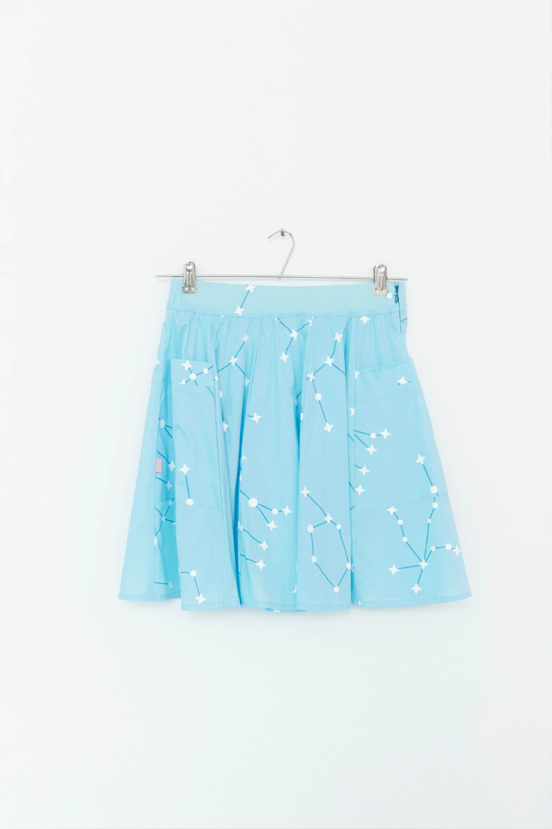 Falda corta con frunces en cintura. Bolsillos laterales. Tiene elastico en la cintura y cierre invisible en el lateral.